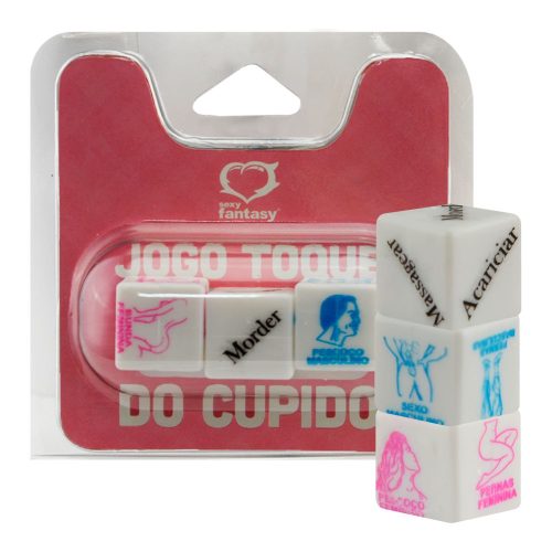 Os Dados Toque do cupido da Sexy Fantasy são jogos para adultos. Os cubos contém ações como morder, beijar; e local como pescoço, pernas sendo separado o dado feminino do masculino. Para você tornar o momento a dois muito mais divertido e criativo!