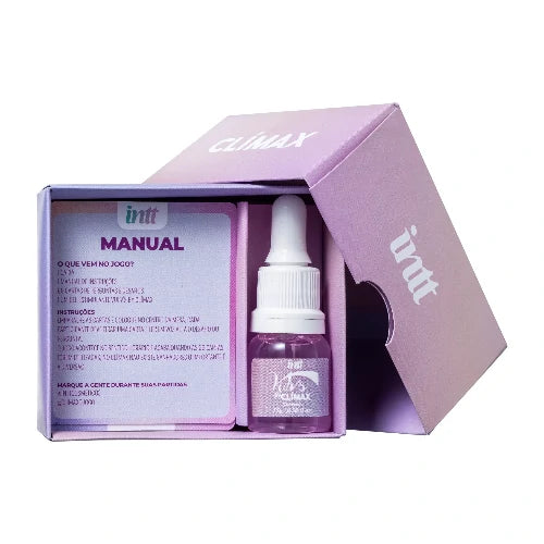 Climax by Intt é um jogo composto por 69 cartas e um gel com efeito quente que vão deixar seus momentos com seus amigos muito mais divertidos. As cartas são compostas por desafios e perguntas sobre sexualidade, desejos, fetiches e interações de perder o fôlego. Clímax funciona para grupos de solteiros, casados, enrolados e afins.