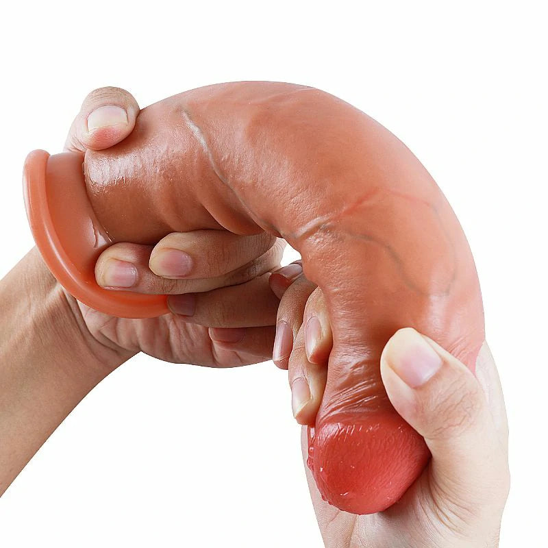 Prótese realística em forma de pênis com dupla camada, confeccionado em PVC possui glande definida,