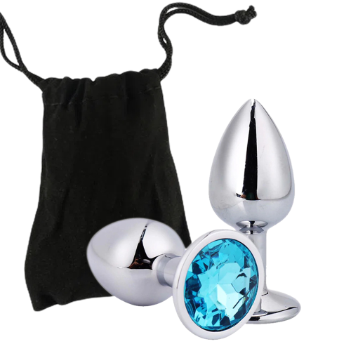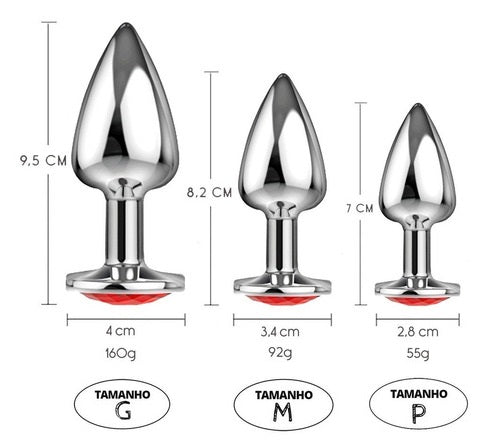 Plug anal de luxo em metal, com formato cônico, feito em alumínio fundido e polido a mão, possui em sua base uma pedra lapidada que lembra um diamante colorido, pode se aproveitar com temperaturas diferentes, coloque-o no freezer para esfriar, ou em uma bacia de água quente para aquecer.