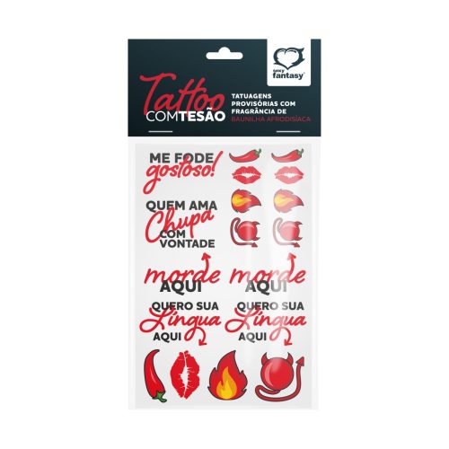 OBS: Cartela contendo 18 tatuagens provisórias, com aroma afrodisíaco de baunilha.